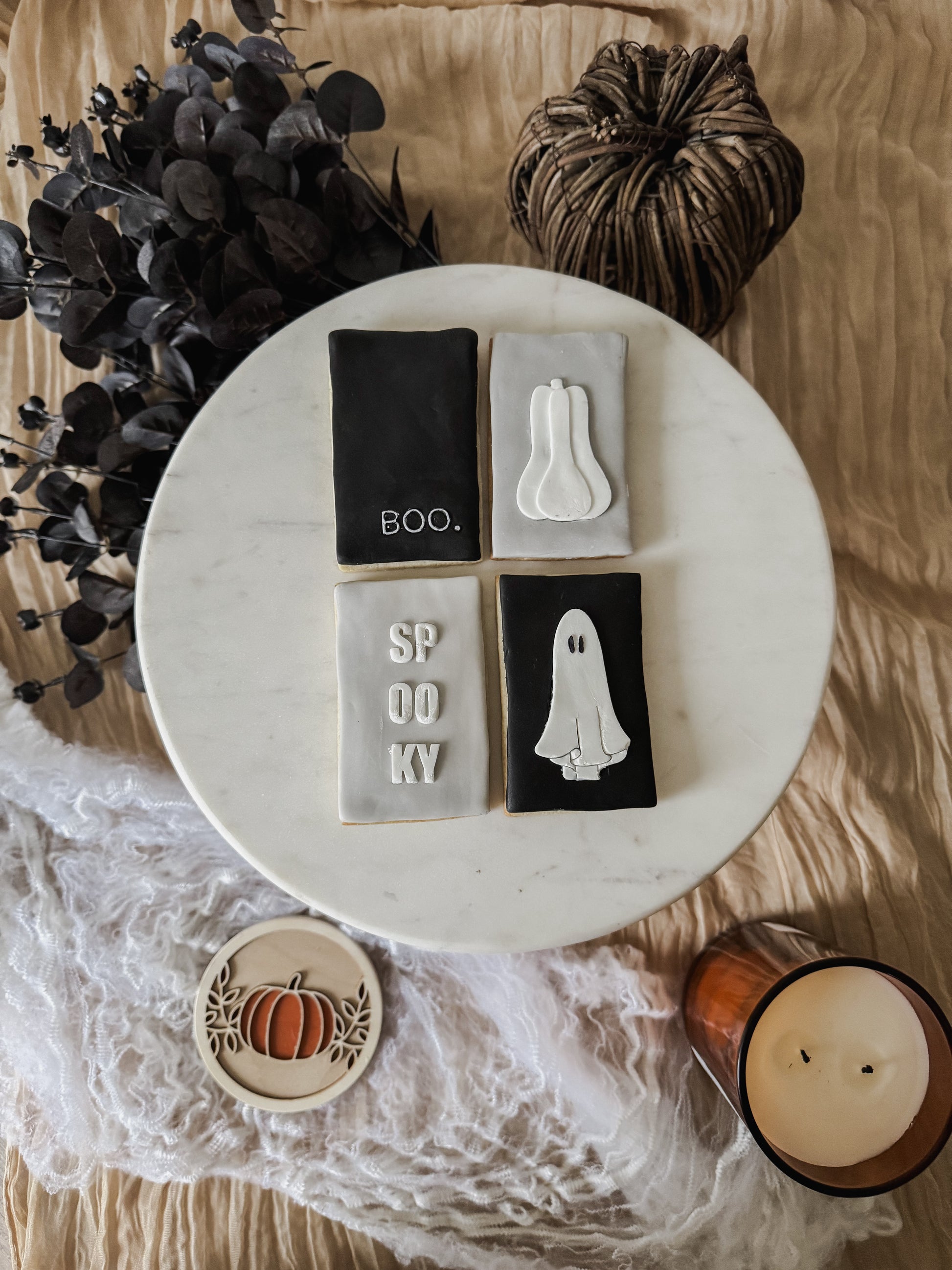Vanilla sugar cookies with hand-decorated, aesthetic details - perfect for enjoying over Halloween, gifting, celebrations or treating yourself.